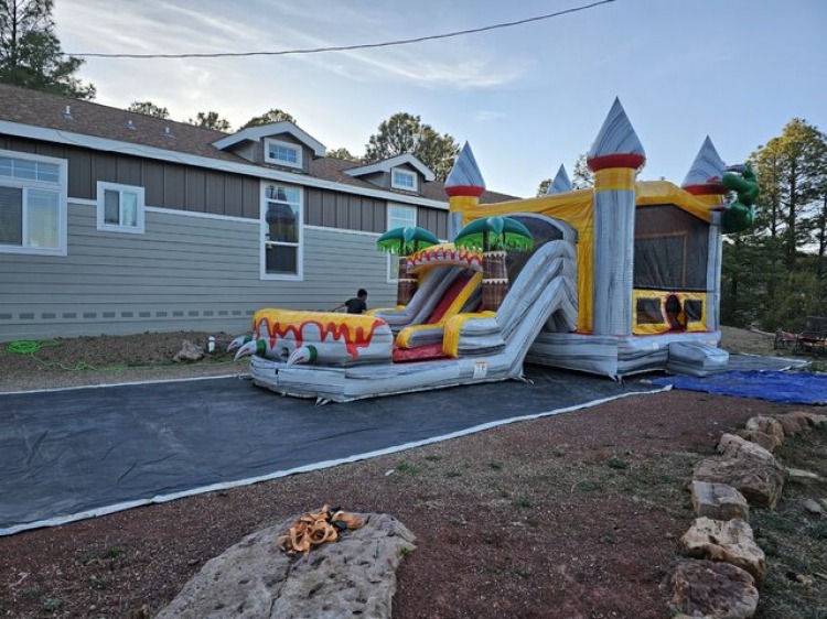 - OCCUPANCY: A maximum of 5-6 kids of equal size at one time for bounce houses, and 1 person at a time for slides is what most inflatable manufacturers recommend.