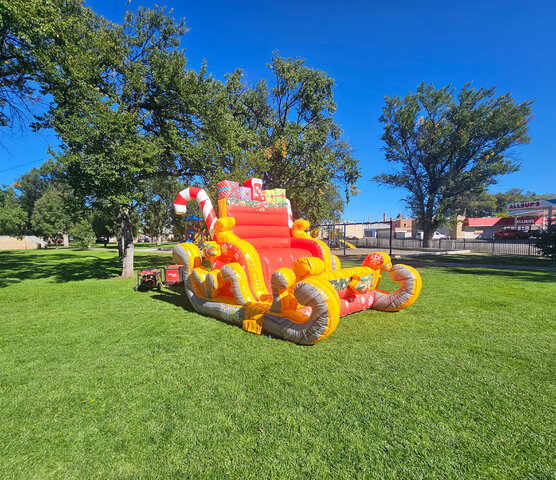 Capture the magic of the holiday season with Santa's Sleigh, the perfect backdrop for unforgettable photo opportunities. This beautifully crafted sleigh is designed with festive details and vibrant colors that evoke the spirit of Christmas. Whether used for parties, holiday events, or private gatherings, Santa's Sleigh provides a charming setting for family photos, making it a must-have attraction. Its sturdy construction ensures safety for all ages, while the spacious seating area comfortably accommodates Santa and his visitors. Create cherished memories and spread holiday cheer with this enchanting sleigh, a timeless addition to any festive celebration, add a snow globe or candy cane inflatable for even more Holiday Christmas magic.
